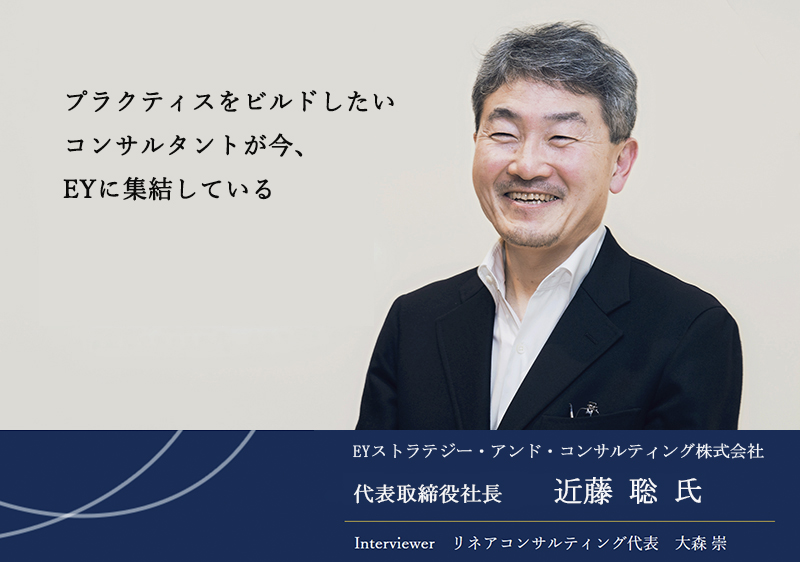 かつてデロイトトーマツコンサルティングで高成長を実現してきた近藤 聡氏が、EYJapanに参画して2年弱。 「今のEYには、プラクティスをこれからビルドできるワクワク感を求めて、優秀な人材が集まってきている」と近藤氏は語る。 自身のキャリアやEYに参画した経緯、成長戦略である「プロジェクト・ドラゴン」、EYの強みについて話をうかがった。
