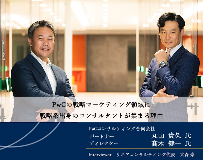 PwCコンサルティング合同会社(以下、PwCコンサルティング)のパートナーである丸山氏とディレクターの髙木氏は共に戦略系コンサルティングファームの出身者だ。