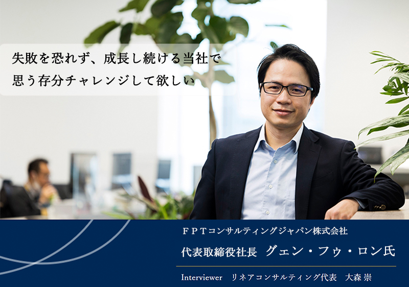 FPTコンサルティングジャパン株式会社の代表取締役社長のグェン・フゥ・ロン氏は、自社について「常にグローバルで働いていることを実感できる」と語る。 自身のキャリア、FPTコンサルティングジャパンの特徴、活躍している日本人社員について話をうかがった。