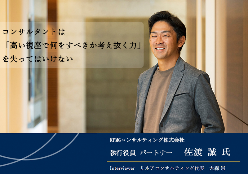 KPMGコンサルティング株式会社(以下、KC)の執行役員 パートナーである佐渡氏は、「エッジが立ったことを仕掛ける組織があるべきだ」という想いで 、2021年にビジネスイノベーションユニット(以下、BIユニット)という独立ユニットを立ち上げた。その背景には「個で動ける機能がなければ、コンサルティングファームは規模や組織力の勝負に陥ってしまうと考えた」からだという。 佐渡氏のこれまでのキャリアやKCの特徴、BIユニットの活動、今後の展望についてうかがった。